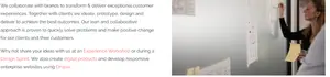 In the below screenshot, imagine a user trying to access the ‘Experience Workshop’ link by pressing their tab key. In this example, focus styles for accessibility have been removed from the website so the user is unable to see where they’re navigating.